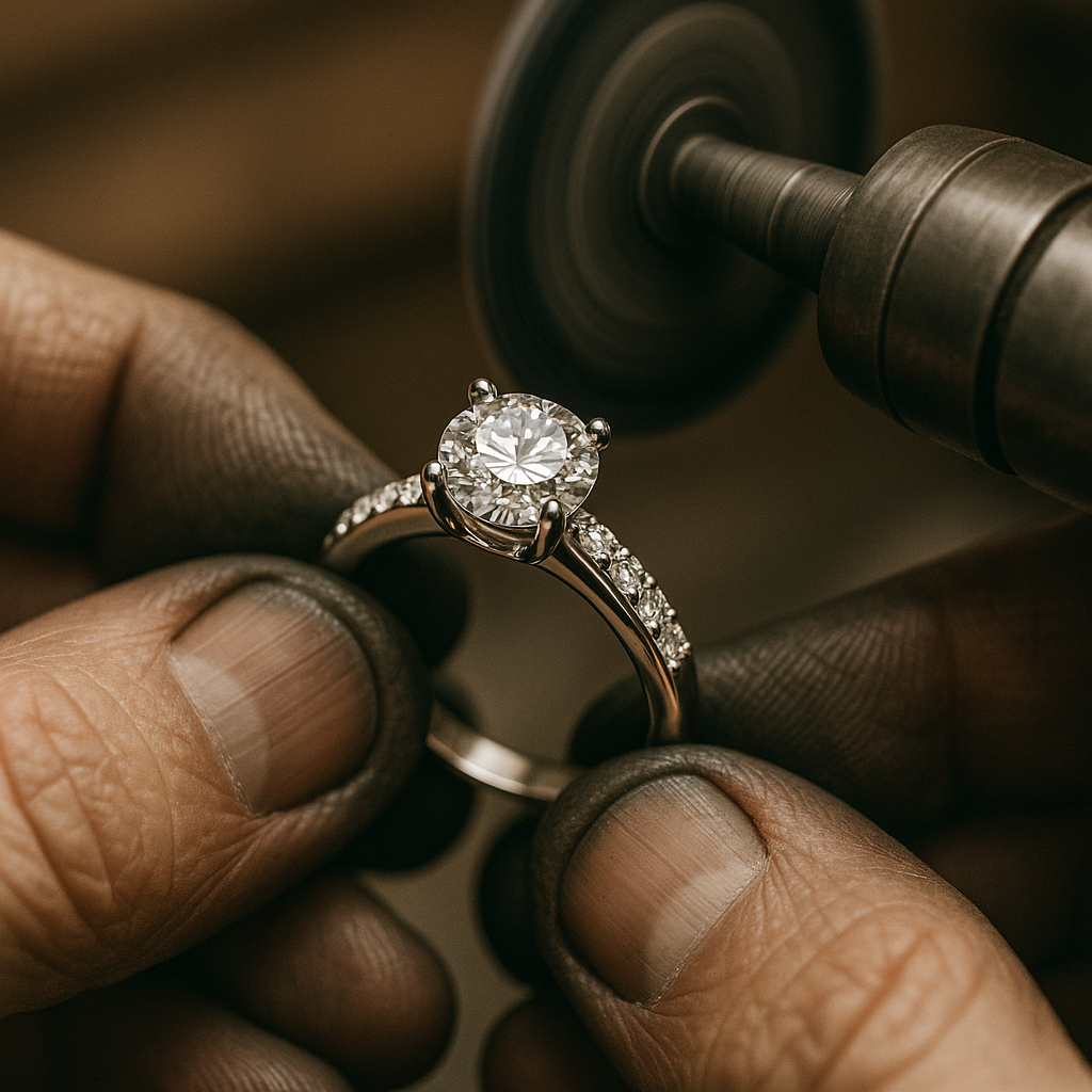In the final step, your jewelry is carefully polished to achieve a brilliant finish. Our experts ensure every surface gleams with perfection, enhancing the metal’s shine and highlighting the intricate details of your design for a stunning, ready-to-wear piece.
