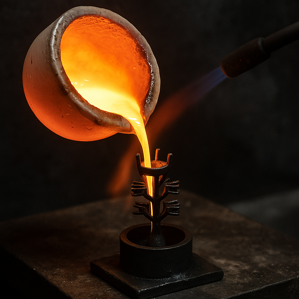 In the second step, your approved design comes to life through the jewelry casting process. Using high-quality materials, the digital design is transformed into a physical mold, which is then filled with molten metal to create the foundation of your jewelry piece, ready for refinement.